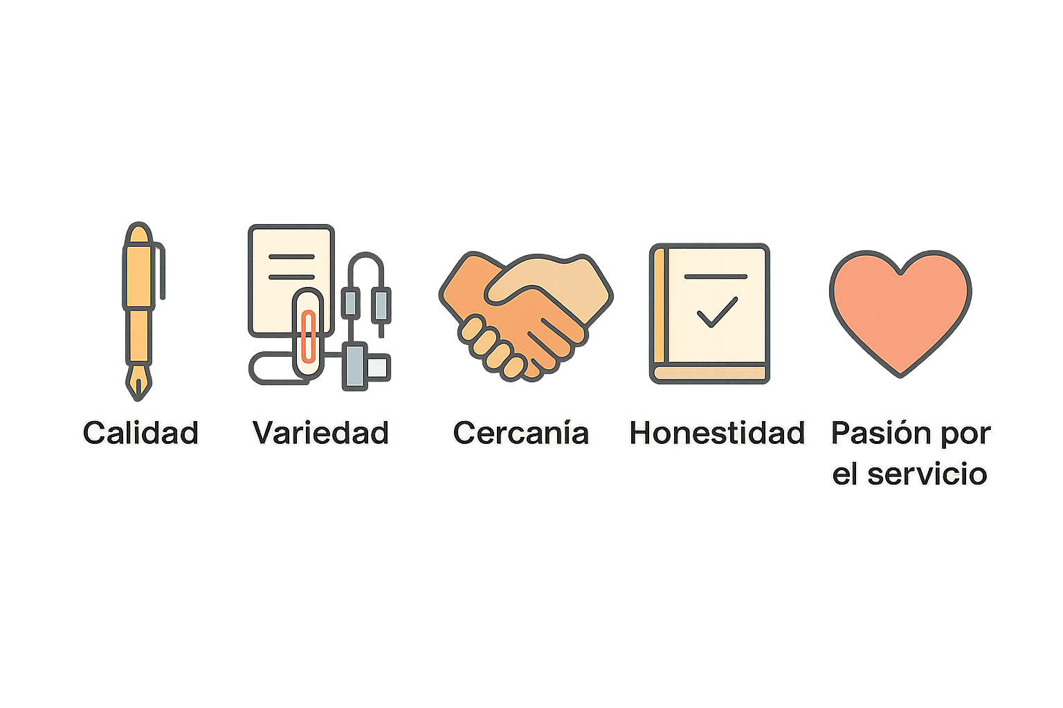 Convertirnos en el punto de referencia nacional para la adquisición de papelería, tecnología, juguetes, maquillaje y artículos de ferretería, ofreciendo siempre una atención amable, precios justos y una selección de productos cuidadosamente curada.